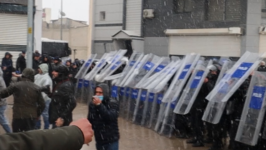 Pirsûs’ta halk kuşatma altındaki Kobanê sınırına yürüyor. Halkın Rojava’ya yönelik saldırı ve kuşatmaya karşı direnişi, kar yağışı ve polis saldırılarına rağmen devam ediyor