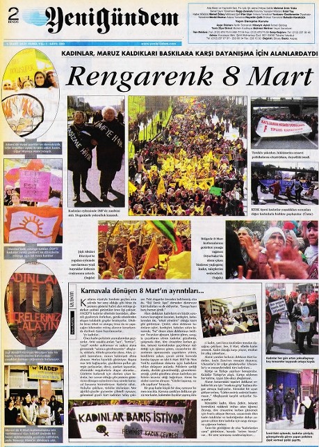 2008’de 8 Mart alanlarında değişmeyen taleplerin başında savaş politikalarına ve kadın cinayetlerine karşı duruş oldu. İstanbul’dan Amed’e kadar birçok ilde etkinliklerde erkek egemenliğine ve kapitalist düzene karşı mücadele, kadın dayanışması ve direnen emekçi kadınlarla dayanışma temaları belirleyici oldu.