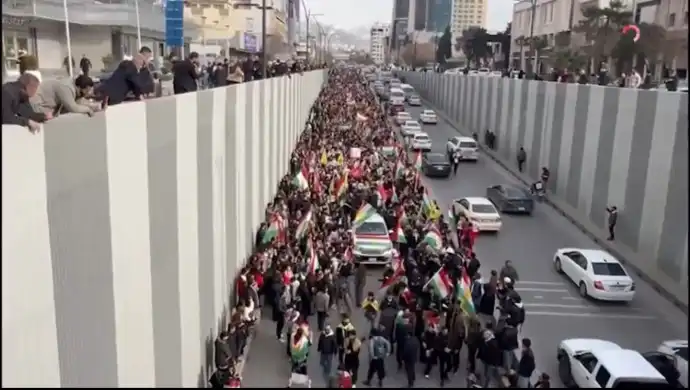 Silêmanî’de binlerce kişinin katıldığı kitlesel yürüyüşlerde, Rojava Devrimi’ne sahip çıkıldığı mesajı verildi