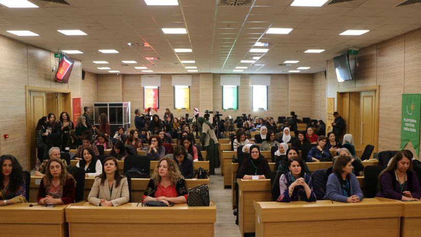 Kürt Kadın Birliği Platformu, Diyarbakır Ticaret ve Sanayi Odası’nda (DTSO) toplantısını gerçekleştirdi. “Kürt kadınlarının öncülüğü ve birliği ile ulusal birliğin inşasına doğru” şiarıyla gerçekleştirilen toplantıya çok sayıda kadın katıldı. Toplantıya Sincan Kadın Kapalı Cezaevi’nde tutsak bulunan Ayşe Gökkan, Zeynep Karaman ve Leyla Güven Kürtçe mesaj gönderdi. Mesajda şu ifadeler yer aldı: