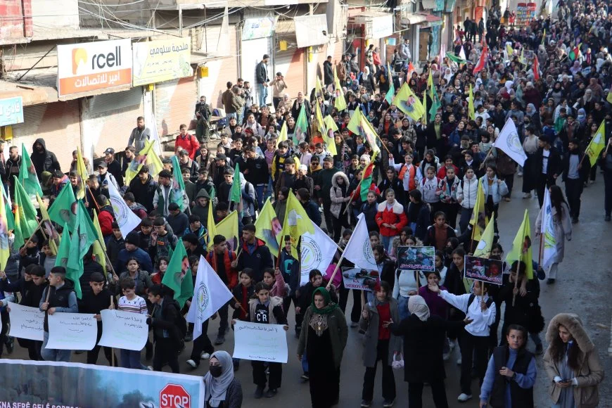 Fırat Kantonu’nda yaşayan binlerce kişi, yürüyüş düzenledi.