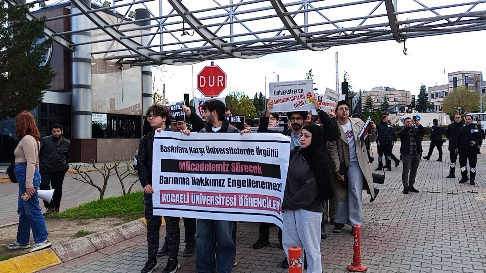 “Biz Kocaeli Üniversitesi öğrencileri olarak hukuksuz kararların geri alınmasını talep ediyoruz. Bütün kamuoyunu barınma ve ifade özgürlüğü mücadelemizle dayanışmaya çağırıyoruz” diyen öğrenciler eylemde sık sık,  “susma haykır barınma haktır”, “barınma haktır gasp edilemez”, “susmuyoruz, korkmuyoruz, itaat etmiyoruz!” “yaşasın öğrenci dayanışması”, “kurtuluş yok tek başına ya hep beraber ya hiçbirimiz”, “baskılar bizi yıldıramaz” sloganları atıldı.