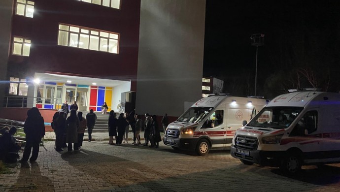 Agirî merkezdeki Kredi ve Yurtlar Kurumu’na (KYK) bağlı kız öğrenci yurdunda dün gece saatlerinde meydana gelen ve çok sayıda öğrencinin fenalaşmasına neden olan şüpheli gaz sızıntısına ilişkin incelemeler sürüyor. Sabah saatlerinde olay yeri inceleme ekiplerinin binada çalışma yaptı.
