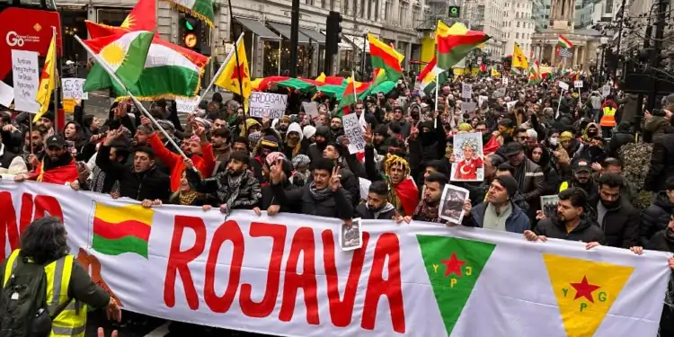 Londra’da Kürt hareketlerinin çağrısıyla bir araya gelen 40 bini aşkın Kürdistanlı, Rojava’ya yönelik saldırıları protesto etti, Kürdistan’ın özgürleşeceğini ve Rojava’yı savunacaklarını vurguladı
