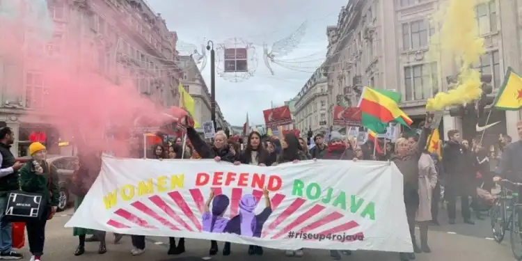 Savaşı besleyen ataerkil sisteme meydan okunan ve mücadeleyi bir bütünen örgütleyen yerlerin başında da Rojava geliyor. “Jin, jiyan, azadî” felsefesiyle yeni bir sistemin inşa edildiği Rojava, 2026 yılının Ocak ve Şubat aylarında HTŞ, DAİŞ ve Türkiye’ye bağlı paramiliter grupların askeri saldırılarıyla bir kez daha hedef alınarak, kazanımlar ortadan kaldırılmak istendi.  Ancak saldırılar bölgedeki kadınların direnişine çarparken, dünya çapındaki kadın örgütlerinden, feminist ve aktivistlerden tepkiler yükseldi. Kadınlar, sistemi savunmak için örgütlenmeye giderek, eylemler gerçekleştirdi, uluslararası kampanyalar başlattı.