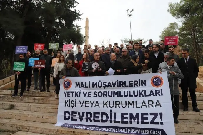 Artuklu ilçesi Karayolları Parkı’nda yapılan açıklamaya çok sayıda muhasebeci ve mali müşavir katıldı. Açıklama metnini Mêrdîn-Şirnex SMMMO Başkanı Mehmet Ali Kurtay okudu.