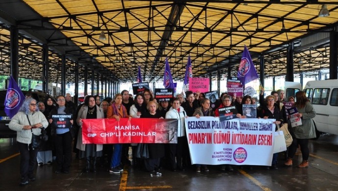 Kadın Cinayetlerini Durduracağız Platformu (KCDP) öncülüğünde, Manisa’nın Yunusemre ilçesinde boşanma aşamasındaki erkek tarafından ateşli silahla katledilen Pınar Karataş (37) için açıklama yapıldı. “Cezasızlık politikası, ihmaller zinciri Pınarı’ın ölümü iktidarın eseri” pankartının açıldığı açıklamaya çok sayıda kadın katıldı.