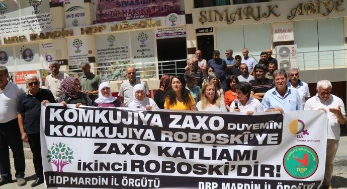 Halkların Demokratik Partisi (HDP) Mardin il ve ilçe örgütleri eş zamanlı açıklamalar gerçekleştirdi. HDP Mardin İl Örgütü önünde gerçekleştirilen açıklamaya HDP Mardin Milletvekili ve Parti Sözcüsü Ebru Günay katıldı. Açıklamada “Zaxo Katliamı ikinci Roboski’dir” pankartı açıldı.