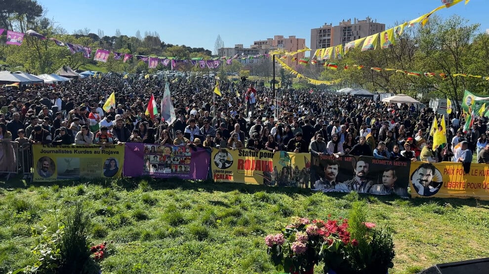 Fransa’nın Marsilya kentinde Parc De la Ravelle’da düzenlenen Newroz kutlamasına binlerce kişi katıldı. Marsilya Demokratik Toplum Merkezi, Arin Mirkan Kadın Meclisi ve Güney Fransa Federasyonu’nun ortaklaşa organize ettiği kutlamada sahneye “Demokratik toplumu jin jiyan azadî felsefesiyle inşa edeceğiz” pankartı asıldı.