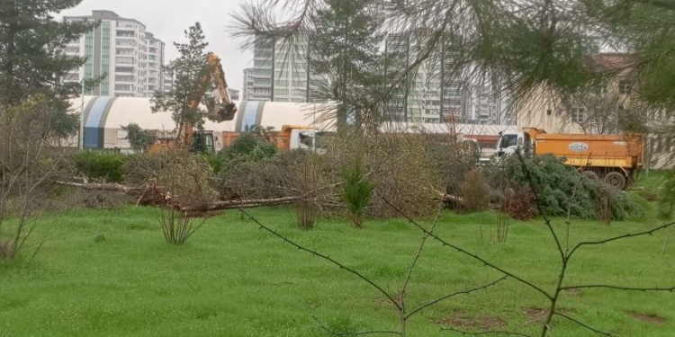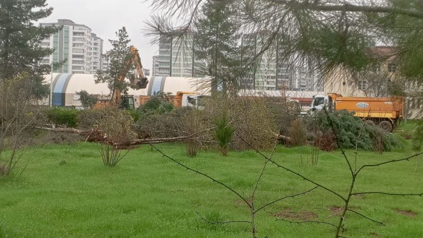 Amed’de bulunan Türk Telekom Lisesi yanındaki ağaçlar MEB tarafından kestirildi