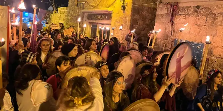 8 Mart dolayısıyla Mêrdîn’in Artuklu ilçesinde meşaleli yürüyüş düzenlendi. Tarihi sokaklarda gerçekleştirilen yürüyüşte kadınlar ‘Jin, jiyan, azadî’ sloganları attı. Yüksel Genç, ‘Bir kadın ayağa kalktığında bir toplum değişir. Ama binlerce kadın birlikte ayağa kalktığında tarih değişir. Ve bugün burada görüyoruz ki tarih değişiyor’ dedi