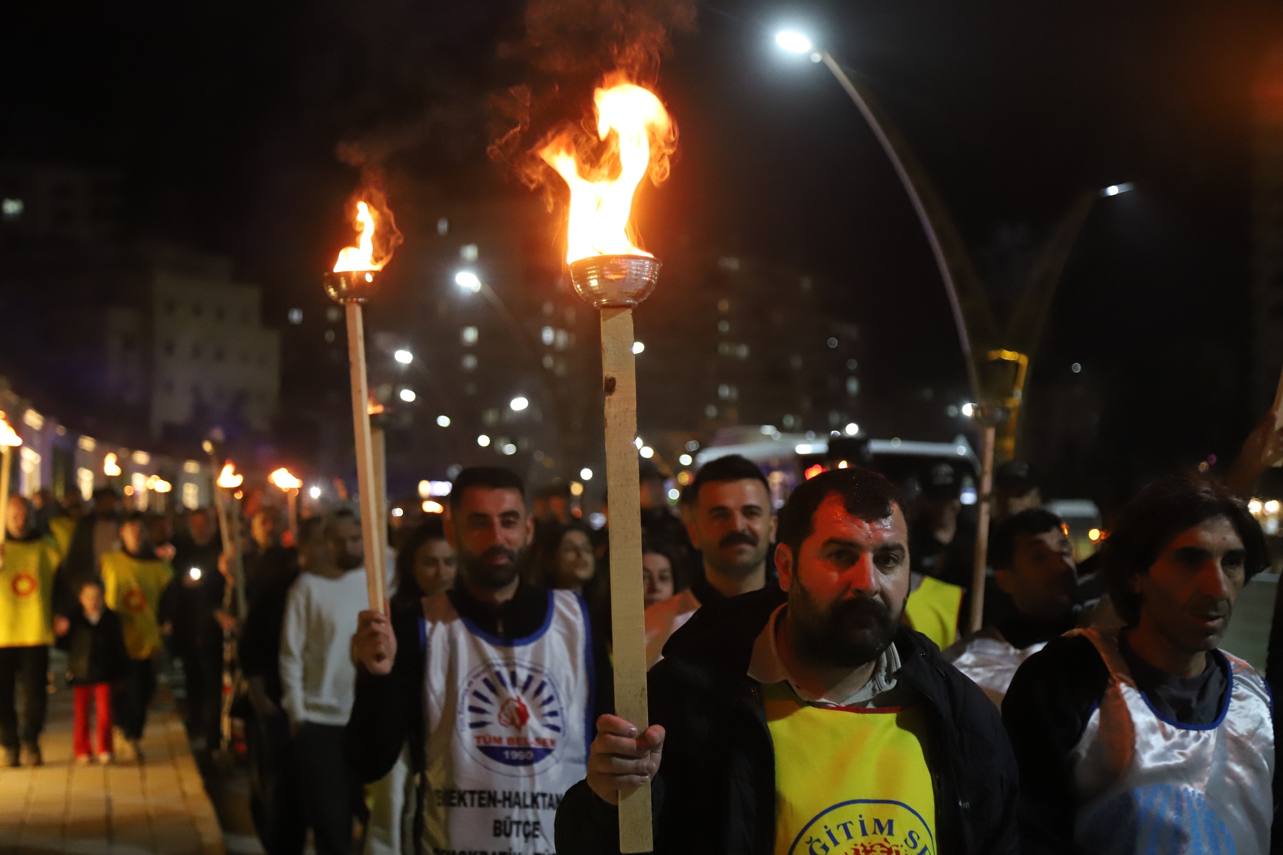 Kamu Emekçileri Sendikaları Konfederasyonu (KESK) Mêrdîn Şubeler Platformu, “Eğitimde şiddete hayır” şiarıyla Mereş ve Riha’da yaşanan okul saldırılarını meşaleli yürüyüşle protesto etti. Mêrdîn merkez ilçe Artûklû’da bulunan TEDAŞ Park’ında bir araya gelen kitle, meşaleler eşliğinde Karayolları Parkı’na yürüdü. Yürüyüşe siyasi parti, demokratik kitle örgütü temsilcileri ve çok sayıda kişi destek verdi. Yürüyüş boyunca sık sık “Bijî berxwedana kadkeran” ve “Yusuf Tekin istifa” sloganları atıldı.