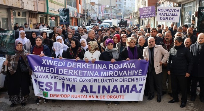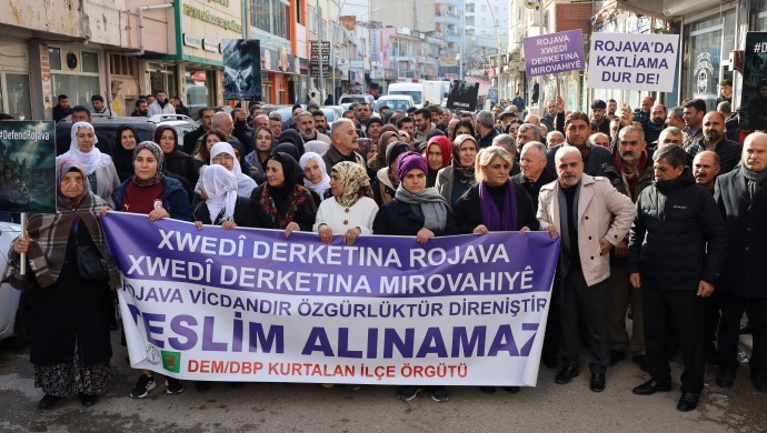 Yürüyüşten sonra açıklama yapan DEM Parti İlçe Eşbaşkanı Nail Asma, Rojava’da katliam yapan karanlık yapıların, kadın erkek demeden sivil yerleşim alanlarını hedef aldığını belirtti. Nail Asma, “Bilinmelidir ki Rojava’nın özgürlüğü sadece Kürt halkının değil, tüm Ortadoğu halklarının geleceğinin teminatıdır. Kürt Halk Önderi Abdullah Öcalan’ın ortaya koymuş olduğu perspektifle bölgede istikrarın sağlanacağına bütün kalbimizle inanıyoruz” dedi.