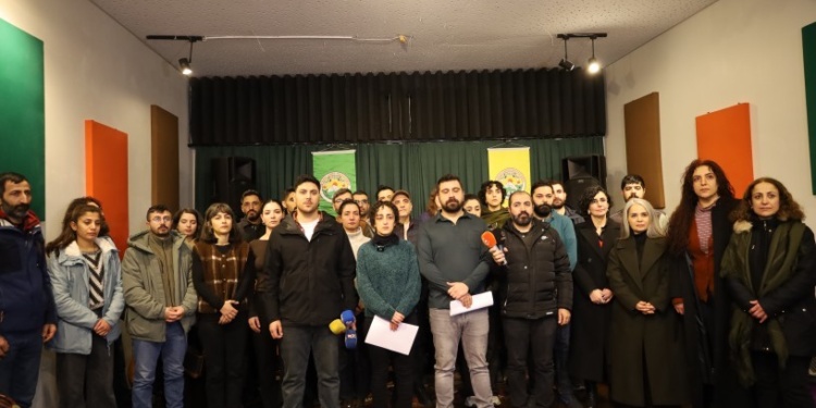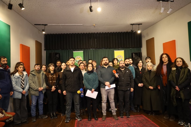 Mezopotamya Kültür Merkezi’de (MKM) çok sayıda sanatçı ve kültür kurumu, Heyet Tahir Şam (HTŞ) ve Türkiye’ye bağlı paramiliter grupların Rojava’ya dönük saldırılarına ilişkin açıklama yaptı. MKM binasında yapılan açıklamanın Kürtçesini MKM çalışanı Mizgin Duruk, Türkçesini ise Taylan Kesanbilici okudu.