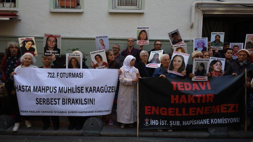 İnsan Hakları Derneği (İHD) Hapishane Komisyonu, hasta tutsakların durumuna dikkat çekmek için her hafta düzenledikleri “F Oturması” eyleminin 712’ncisini Beyoğlu’nda bulunan dernek binalarının önünde gerçekleştirdi.