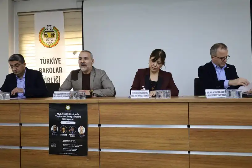 Mûş Barosu öncülüğünde, Mûş Barosu Avukat Tahir Elçi Konferans Salonu’nda “Muş, politik aktörlerle toplumsal barış sürecini konuşuyor” konulu panel düzenlendi. Panelde, Halkların Demokratik Kongresi (HDK) Eşsözcüsü ve Halkların Eşitlik ve Demokrasi Partisi (DEM Parti) Erzirom Milletvekili Meral Danış Beştaş, Cumhuriyet Halk Partisi (CHP) Ankara Milletvekili Okan Konuralp ve Yeni Yol Grubu Grup Başkanvekili Mehmet Emin Ekmen’in konuşmacı olarak yer alırken, panelin moderatörlüğünü Mûş Baro Başkanı Kadir Karaçelik gerçekleştirdi. Panele, siyasi parti ve sivil toplum örgütü temsilcilerinin yanı sıra çok sayıda yurttaş katıldı.