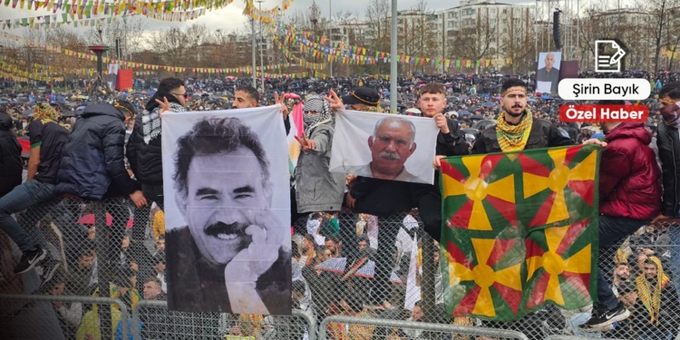 Öte yandan Kürt Halk Önderi Abdullah Öcalan’a özgürlük talebi de yine Newroz’un dikkat çeken mesajlarından biri oldu. Nitekim Öcalan’ın fotoğrafları ile donatılan alanda, Öcalan’ın mesajının okunması ile bu talep uzun sloganlar halinde alanda yankılandı.