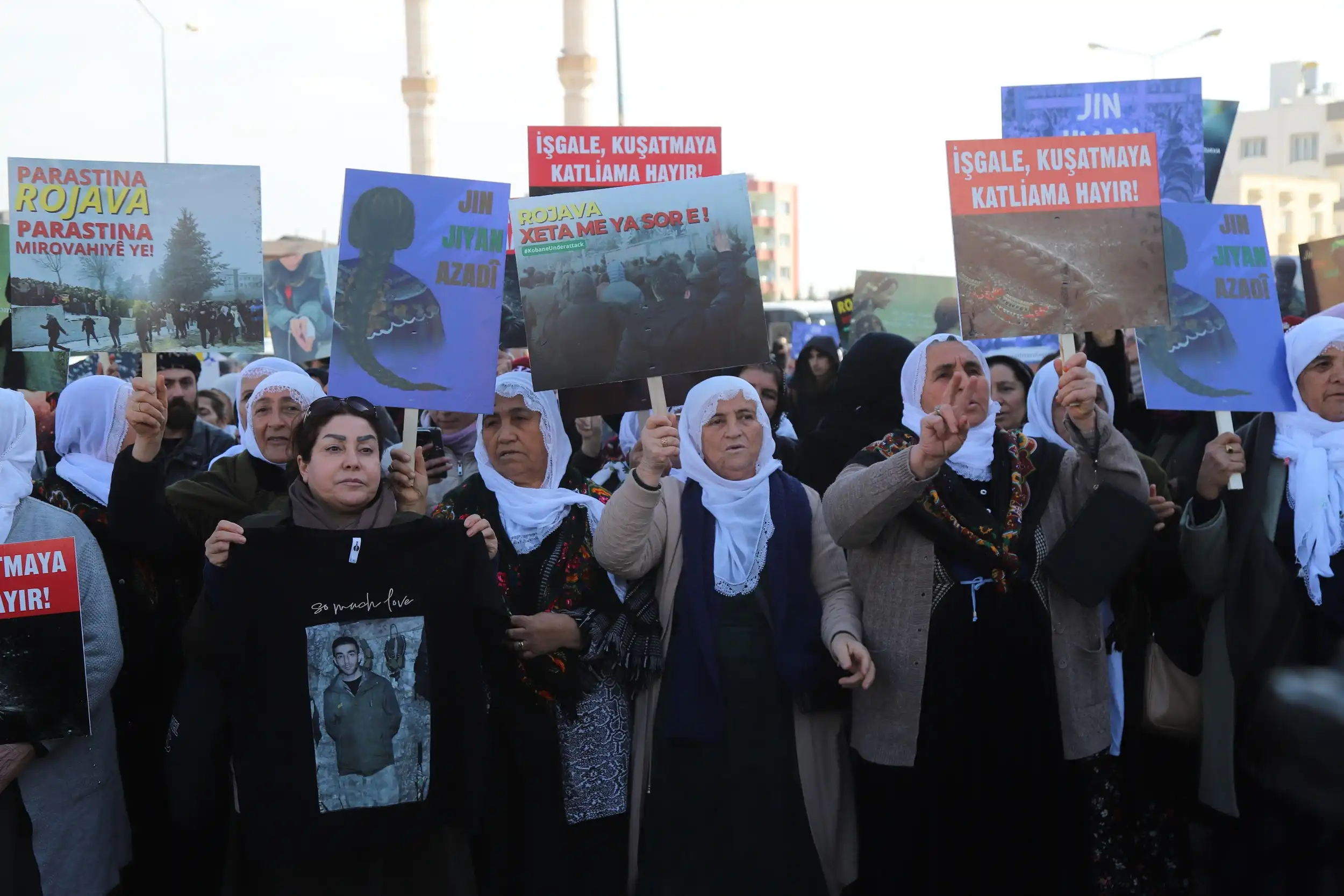 Yurttaşlar, Kürdistan’ın dört bir yanında Kürtlerin ve dostlarının ayakta olduğunu ve Rojava’yı yalnız bırakmayacaklarını belirterek, “Kürdistan yek e/Kürdistan birdir. Rojava’yı savunacağız. QSD’nn, YPG’nin, YPJ’nin yanında olacağız. Bu yürüyüşlerin, eylemlerin devam etmesi gerekiyor. Büyük bir direniş ile Rojava’da katliamın önüne geçeceğiz. Kazanacağız. Kobanê’deki çocukların hesabını soracağız. Başarana kadar durmayacağız” mesajı verdi.