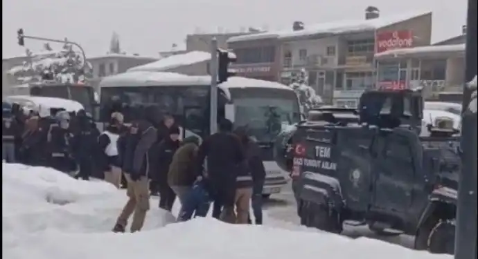 Bedlîs’in Norşîn (Güroymak) ilçesinde 23 Ocak’ta Rojava’ya dönük saldırılara karşı yapılmak istenen yürüyüşte gözaltına alınan 8 kişiden 3’ü tutuklandı. Rojava’ya dönük saldırıları protesto etmek için Halkların Eşitlik ve Demokrasi Partisi (DEM Parti) Norşîn İlçe Binası önünden Roboskî Parkı’na yürümek isterken darp edilerek gözaltına alınan aralarında DEM Parti Bedlîs İl Yöneticisi ve İl Genel Meclis üyelerinin de yer aldığı 8 kişi ters kelepçeyle gözaltı süreci boyunca fiziksel şiddete maruz kalmıştı. “Polise mukavemet” iddiasıyla gözaltına alınan 8 kişiden 2’si emniyet ifadeleri ardından serbest bırakılırken, 6 kişi adliyeye sevk edildi. İfadeleri alınan 6 kişiden 3’ü tutuklama istemiyle mahkemeye sevk edildi. Sulh Ceza Hakimliği, 3 kişinin tutuklanmasına, 3 kişinin de adli kontrol şartıyla serbest bırakılmasına karar verdi.