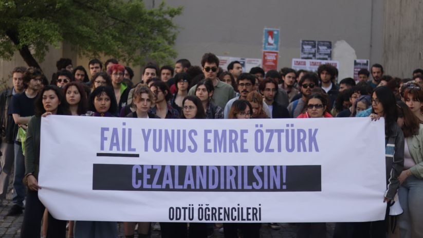 Ankara’da Ortadoğu Teknik Üniversitesi (ODTÜ) öğrencileri ve Feminist Dayanışma, tecavüz faili olan ve beraat eden Yunus Emre Öztürk’ün  gereken cezayı alması için kampüste basın açıklaması gerçekleştirdi.