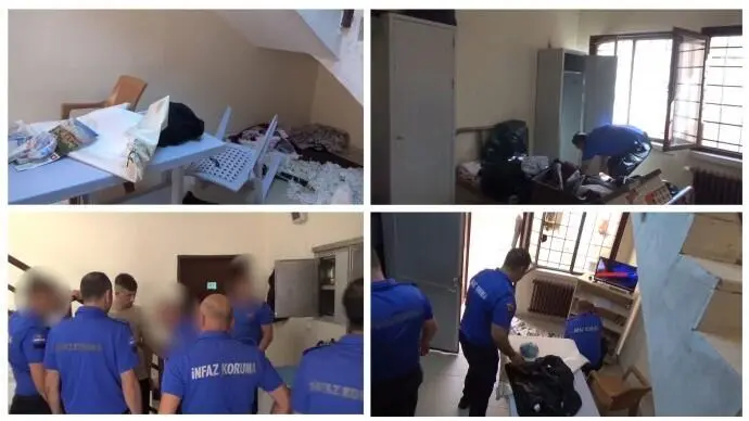 - dakika 45. saniyede mahpus, bir infaz koruma memuru tarafından “sen gel yukarı gel şeklinde” denilerek kamera alanından çıkarılmaktadır. Devam eden görüntülerde infaz koruma memurlarının eşyalara tekme atarak mala zarar verdikleri, 3. dakika 50. saniyeden itibaren aramanın rutin olmaktan çıkarılıp keyfi bir tahribata dönüştürüldüğü açıkça görülmektedir.