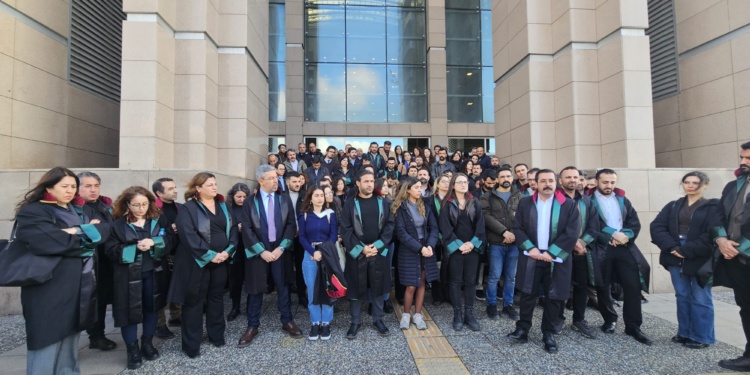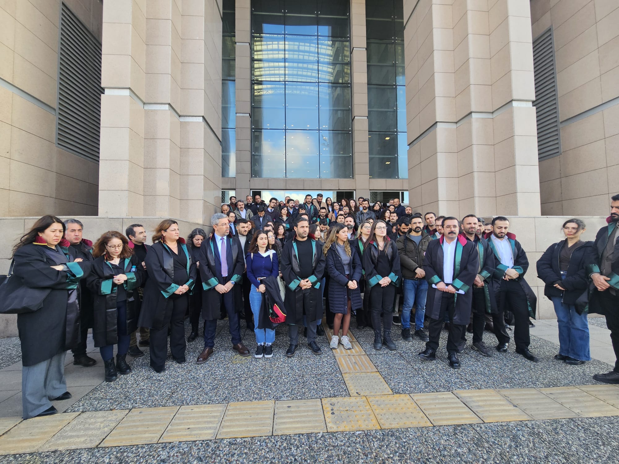 İstanbul Barosu Genel Sekreteri Ezgi Şahin ise “Bugün burada savunmanın cezalandırıldığı ancak savunmanın her karara rağmen devam edeceğini görüyoruz. İnsan haklarını savunmak meslektaşın mesleğini yürütmesi için buradayız. Avukatların avukatlık mesleğinin cezalandırılmasını kabul etmiyoruz. Bu anlamda bu yargılama ne ilk ne de son. Avukatlar zaman içerisinde hep hedef alınmıştır. Biz bize biçilen rolü kabul etmiyoruz” diye belirtti.