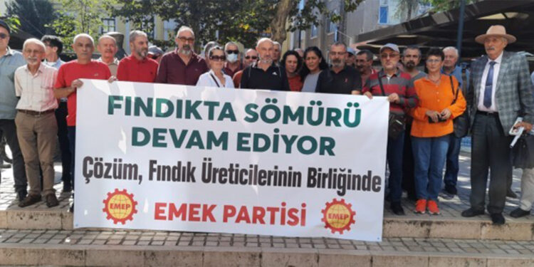 Emek Partisi (EMEP) Ordu İl Örgütü, fındık üreticilerinin yaşadığı sorunlara ilişkin kent merkezinde bulunan Tahıl Pazarı Meydanı’nda basın açıklaması yaptı. Açıklamada “Fındıkta sömürü devam ediyor. Çözüm fındık üreticilerinin birliğinde” pankartı açıldı.