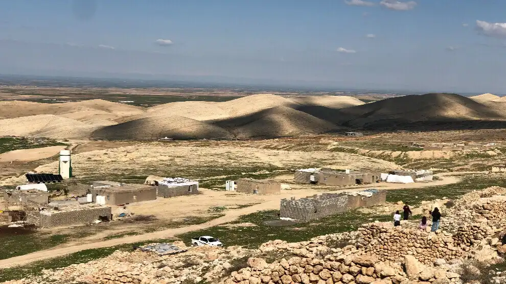 Bu cesur kadın ile bütünleşen mekanı ziyaret etmek için Bekira köyüne doğru yola çıktık. Bu köy Şengal’in kuzeyinde yer alıyor. Buralarda bahar mevsimi kendini iyice hissettiriyor. Bize Şengal Jineoloji Akademisi üyesi Êzidî kadın Sara Botan eşlik ediyor. Zerîfe Ûsê’nin köyü, Şengal Dağı’nın eteklerinde kurulmuş. Tüm evler taşlardan yapılmış ve el emeğiyle inşa edilmiş.