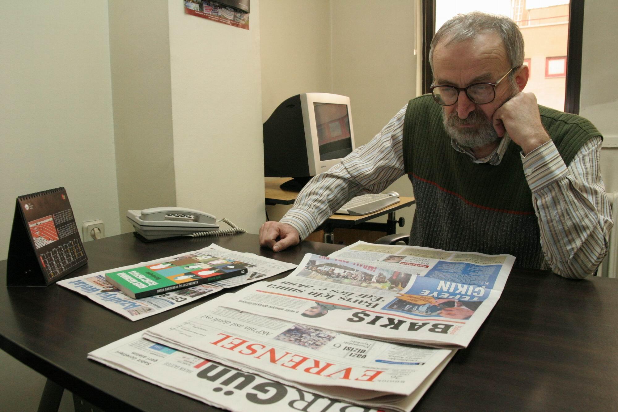 Odasına girdiğimizde dikkat çeken başka bir şey ise Yeni Yaşam gazetesinin son sayılarının masanın üstünde istiflenmesidir. Gazeteye abone olduğu için dağıtımcı arkadaş her gün gazetesini masasına bırakmaktadır.