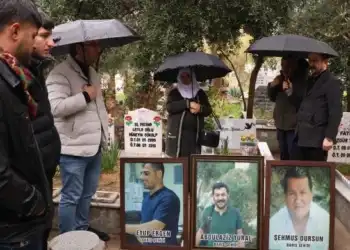 Sokağa çıkma yasaklarında katledilen sağlık emekçileri Şeyhmus Dursun, Eyüp Ergen ile Abdulaziz Yural mezarları başında anıldı Şirnex'in Cizîr (Cizre) ilçesinde...