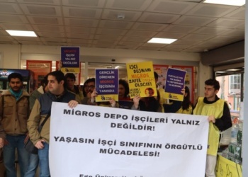 Ege Üniversitesi Öğrencileri, hak talepleri nedeniyle işten çıkarılan Migros depo işçileri için yaptıkları açıklamada, ‘Migros boykotu büyüyor, eğer bu meseleyi...