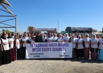 Mersin Demokratik Kurumlar Platformu ve İHD Mersin Şubesi, 78 yaşındaki hasta tutsak Bese Ecer'in serbest bırakılması için Tarsus Cezaevi önünde...