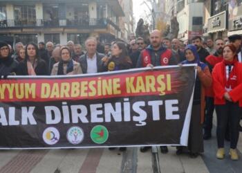 Akdeniz Belediyesi’ne dönük kayyım protestosunda konuşan Êlih Belediyesi'nin seçilmiş Eşbaşkanı Gülistan Sönük, ‘Direnenler kazanacak,’ dedi Halkların Eşitlik ve Demokrasi Partisi...