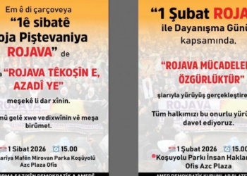 Demokratik Kurumlar Platformu, 1 Şubat Rojava İle Dayanışma Günü kapsamında gerçekleştirilecek olan yürüyüşe katılım çağrısı yaptı Demokratik Kurumlar Platformu, 1...