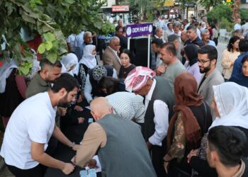 DEM Parti Mûş İl Örgütü ‘Barış istiyorum çünkü’ kampanyası için kentte bulunan Atatürk Parkı önünde imza standı açtı Halkların Eşitlik...