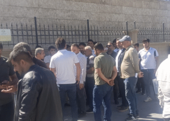 Deprem konutları inşaatında çalışan ve 4 aydır maaşları ödenmeyen işçiler, maaşlarının ödenmesi istemiyle valilik önünde eylem yaptı Semsûr'da (Adıyaman) Çevre...