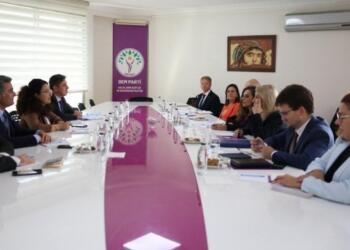 DEM Parti yöneticileri ile bir araya gelen AB Bölgeler Komitesi heyeti, kayyım uygulamaları, Türkiye-AB ilişkileri ve Yerel Yönetimler Özerklik Şartı...