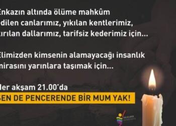 Deprem bölgeleri ve depremde hayatını kaybedenler için HDK, 'Sen de pencerenden bir mum yak' sloganıyla kampanya başlattı Mereş'te ( Maraş)...