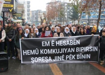 TJA üyelerinin Êlih'te katledilen Kürt kadınları için yaptığı basın açıklamasında konuşan TJA aktivisti Gülistan Sönük, 'Sesimizi evde, sokakta, iş yerlerinde...