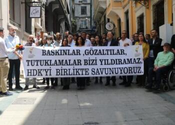 HDK, HDP ve GÖÇİZ-DER’e yönelik yapılan gözaltı operasyonu milletvekilleri ve siyasi partilerin temsilcilerinin de katılımıyla protesto edildi: Bu düzen değişmedikçe...