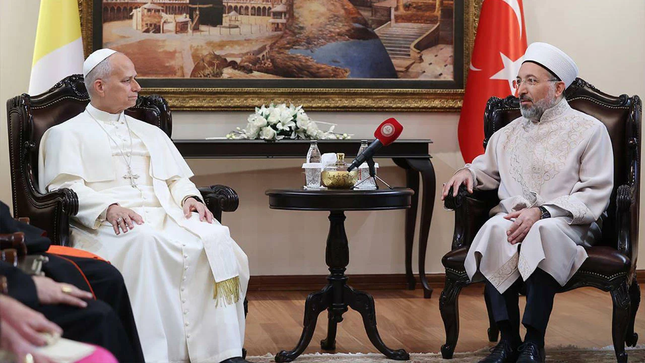 Türkiye’ye resmi ziyarette bulunan Katolik dünyasının ruhani lideri ve Vatikan Devlet Başkanı Papa 14’üncü Leo, Diyanet İşleri Başkanı Şafi Arpaguş ile bir araya geldi