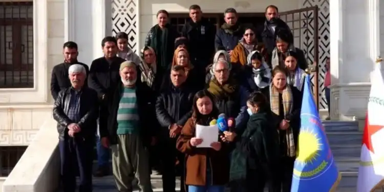 Kobanê kentindeki Demokratik Birlik Partisi (PYD), bölgedeki durum, sivillerin katledilmesi ve halkın direnişi hakkında Kobanê’deki merkezlerinin önünde bir açıklama yaptı.