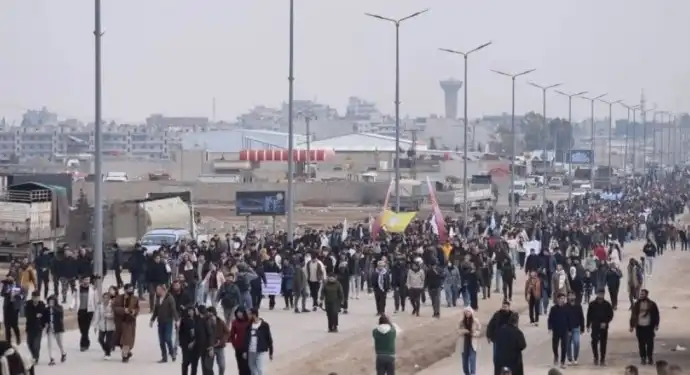 Kuzey ve Doğu Suriye’nin Cizîr Kantonu’na bağlı Qamişlo’da binlerce kişi Dêr Hafir’dan dönen konvoyu karşıladı. Şehit Yusîf Gulo Kavşağı’nda bir araya gelen kitle, dün Şêxmeqsûd ve Eşrefiyê direnişini desteklemek için Cizîr Kantonu’ndan Dêr Hafir’e giden konvoyu karşıladı. Karşılamada sık sık ““Şehit Namirin” ve “Bijî berxwedana Şêxmeqsûd” sloganları atıldı.