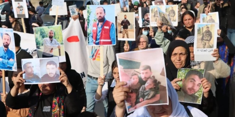 Qamişlo’da düzenlenen eylemede Ocak 2026’dan bu yana Suriye Geçici Hükümeti tarafından 2 ayı aşkın süredir cezaevinde tutulan esirlerin serbest bırakılması istendi. Eylemde aileler, uluslararası kuruluşları harekete geçmeye çağırdı