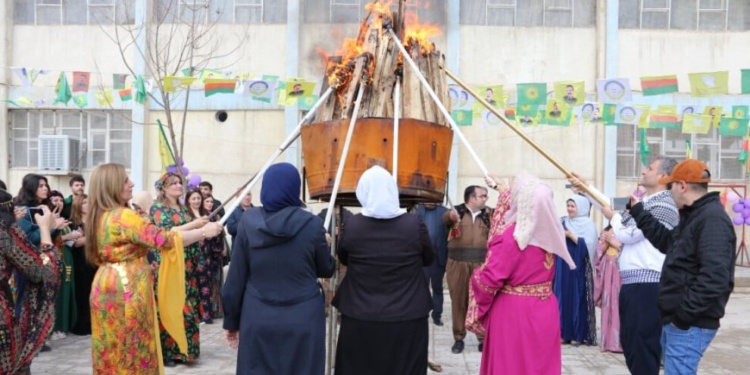 Ardından Newroz meşaleleri yakılarak Kürtçe şarkılar eşliğinde halaylar çekildi. TEV-DEM üyeleri ayrıca kentteki binalarının önünde bir araya gelerek şarkı söyledi.