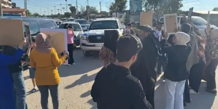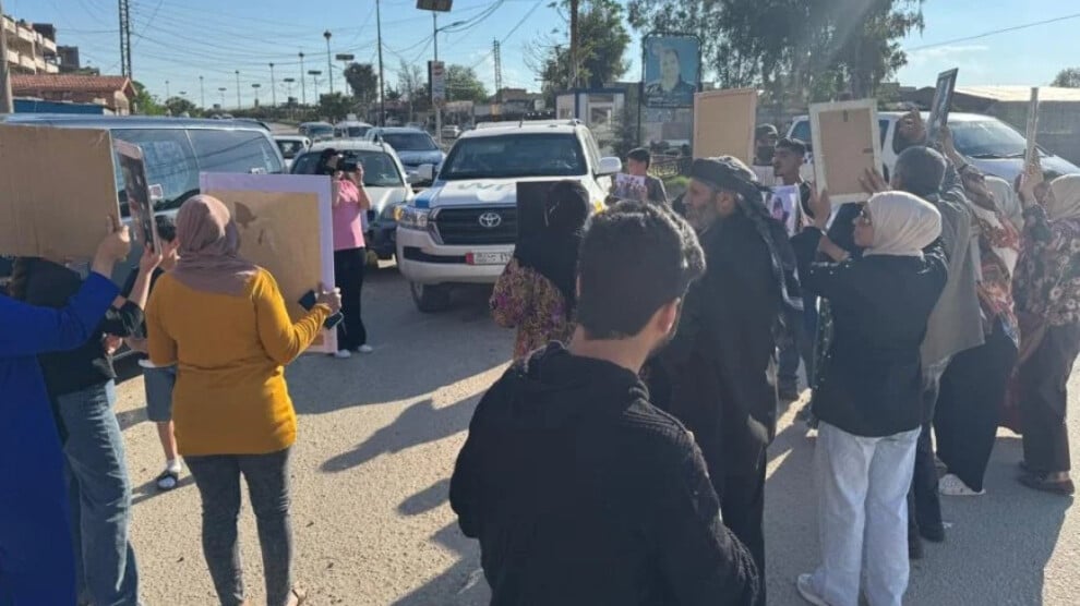 Qamişlo’da esir aileleri, BM’ye bağlı araçların yolunu keserek eylem yaptı. Aileler, uluslararası örgütlerin rehineler konusundaki sessizliğini protesto etti