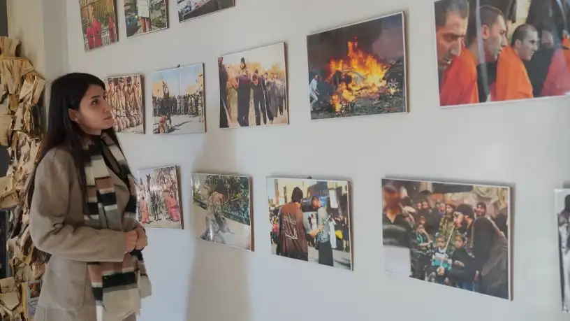 Binlerce kitabın yakıldığını ve kütüphanelerin talan edildiğini söyleyen Serfiraz Şerîf, “Bunlar gerçek anların fotoğrafları. Dertleri aynı zamanda bir tarihi ve kültürü sessizleştirmekti. Okul isimlerini değiştiriyorlardı. İslami bir isim veriliyordu. Burası, Êzidî kadınların yaşlarına göre nasıl satıldığını gösteriyor. 40 yaşına kadarsa 75 bin dinar. Yaşı ne kadar küçükse fiyat o kadar yükseliyordu. 6-9 yaş çocuklar 200 bin dinardı” ifadelerini kullandı.
