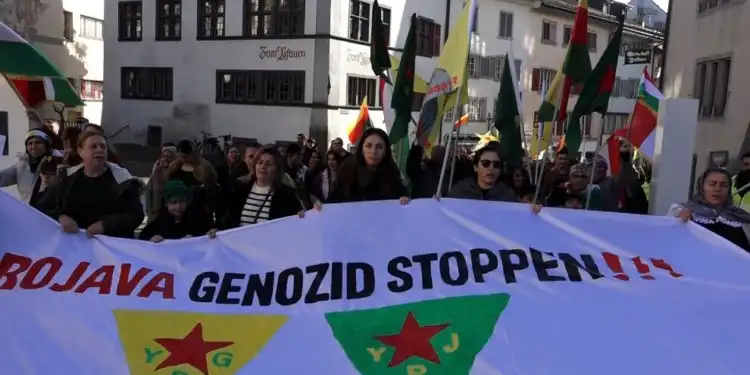 İsviçre’nin Rapperswil kentinde Kürdistanlılar, Rojava’ya yönelik saldırıları protesto ederek, Şam ile Rojava Özerk Yönetimi arasında varılan anlaşmanın uygulanmasını istedi