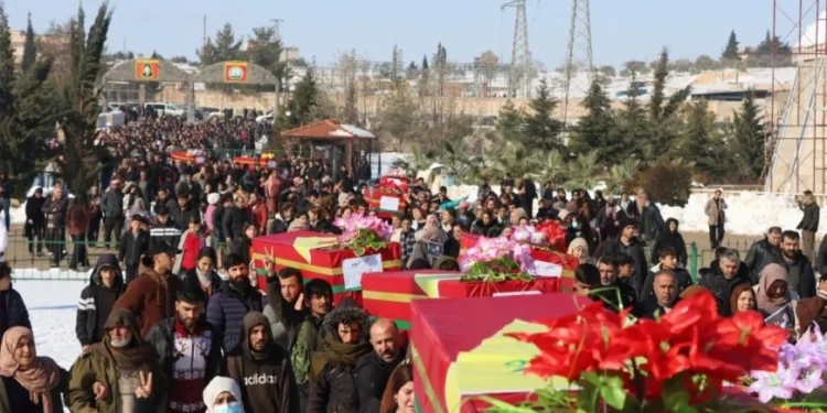 Reqa’da yaşamını yitirenler Kobanê’de ‘Şehid namirin’ sloganlarıyla uğurlandı