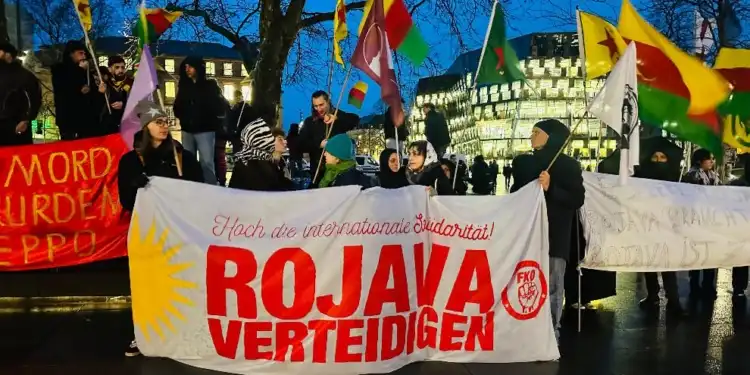 Almanya’nın farklı kentlerinde Rojava’ya yönelik saldırılar kitlesel protestolarla kınandı. Eylemlerde sivillere insani yardım çağrısı yapılırken, uluslararası kamuoyuna dayanışma mesajları verildi